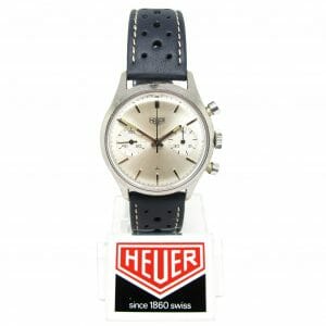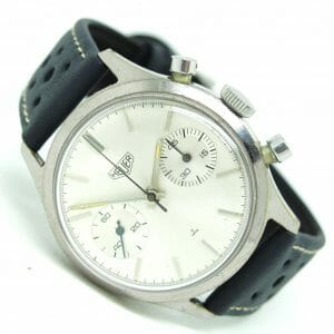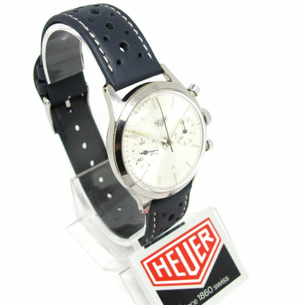 Very stylish and totally underrated (ioho) vintage chronograph from the 1960’s, great all original condition vintage Heuer chronograph, nicknamed the pre Carrera, this is such a cool watch , the same price as a re issue, super value for money, it comes with one of our navy blue racing straps (if you prefer another colour we will change free of charge)