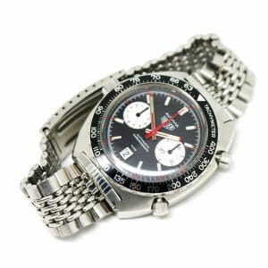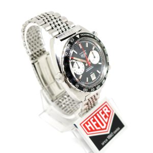 Super example of a vintage Heuer classic. The viceroy version is now iconic as a seventies design. These watches could be purchased at a special price with Viceroy cigarette coupons, it was marketed as a racing watch which has a tachymetre bezel. This fine example comes on the iconic GF bracelet (replacement Heuer clasp). It is from the original owner and has the papers which are not filled in. The condition is very good, movement serviced and all ready to wear.