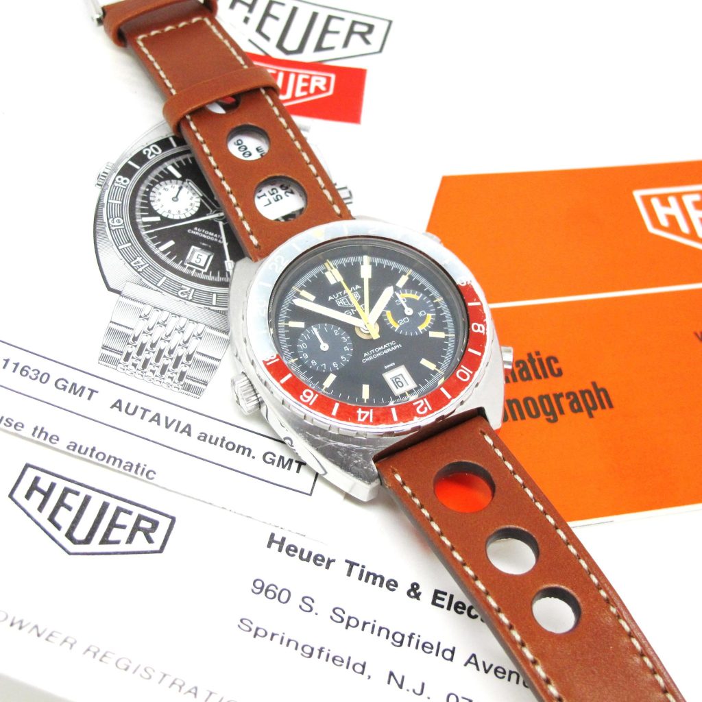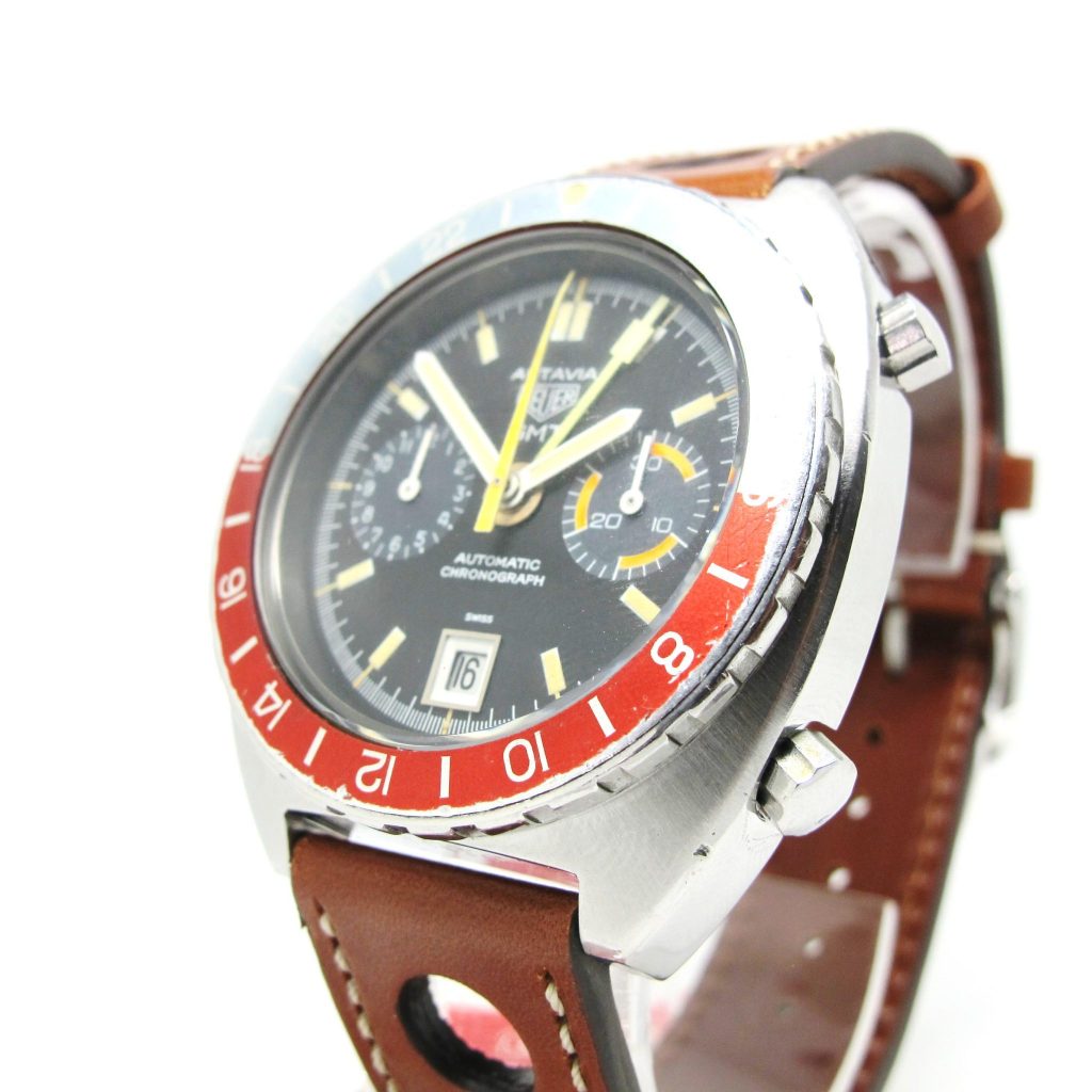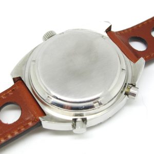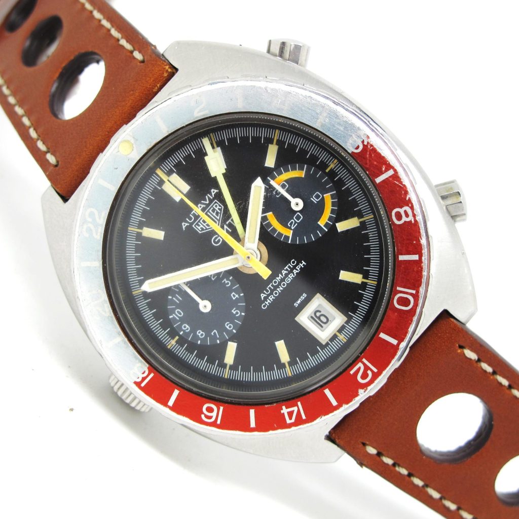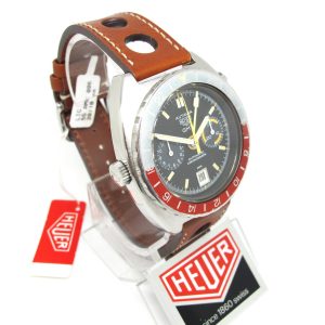 A great Autavia GMT, full of character and fabulous patina. This watch has been worn and enjoyed, the blue of the bezel has taken on a “ghost” pale blue patina which gives a stunning contrast with the red. The original owner certainly loved this watch and kept the guarantee booklet (not filled in) envelope, instruction booklet and even it’s hang tag! A great watch serviced running fine and ready to wear.