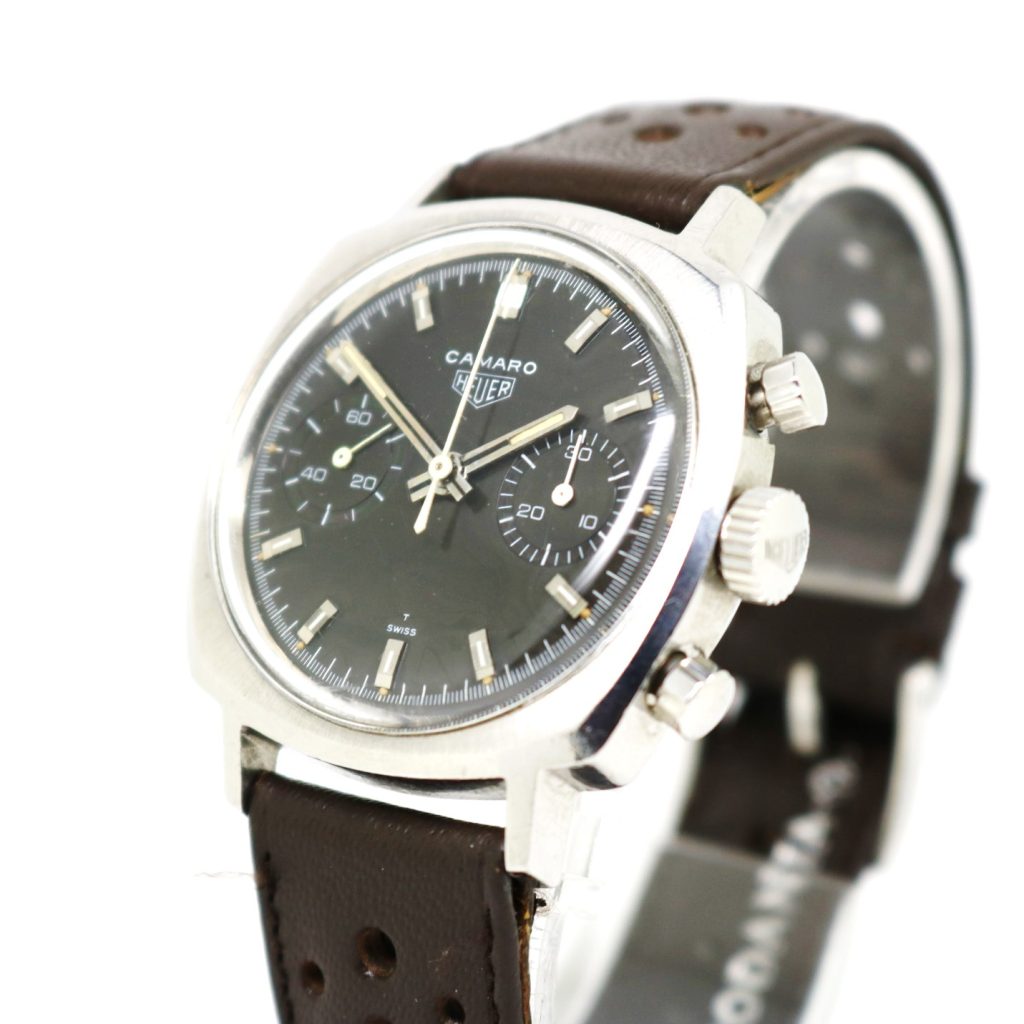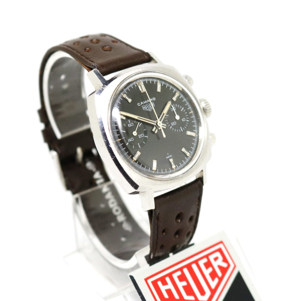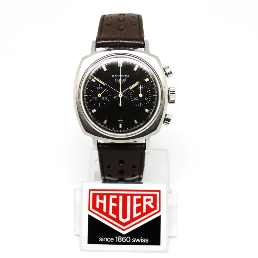 In the heart of Heuer’s golden age in the late sixties, Jack Heuer became passionately interested in the American market. The integration of the Heuer name into American motorsports culture was accelerated massively through the release of the Heuer Camaro. Commissioned over a four-year period between 1968 and 1972, the Camaro model was inspired by Chevrolet’s revolutionary automobile model of the same name. The Camaro automobile emerged an icon of smaller, lighter and quicker cars of a new generation- the Heuer Camaro was praised similarly for its avant-garde design in the spirit of ‘70s watchmaking. Between 1967 and 1969, the Camaro Super Sport was used as the official pace car in the USA’s most prestigious racing competition- the Indianapolis 500. This exposure and subsequent popularity of the Camaro automobile resulted in enormous media presence for the Heuer product line, with widespread logo recognition following as a result. This excellent publicity, coupled with unique and bold designs solidified the Heuer Camaro as a hugely popular piece still revered by collectors today.