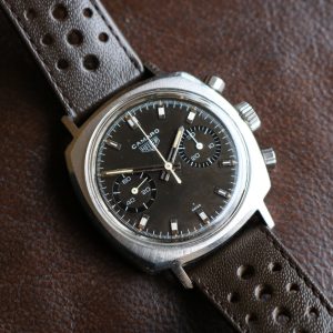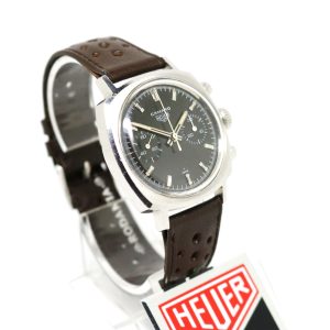 This particular 7743 reference features a gorgeous tropicalised brown dial with two subdials. This watch stands in excellent condition and remains in perfect working order. Its totally unique appearance caused by beautiful patina makes this watch a desirable treasure to any Heuer collector.