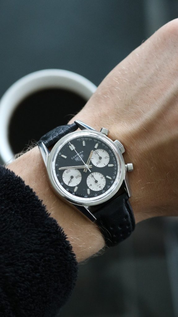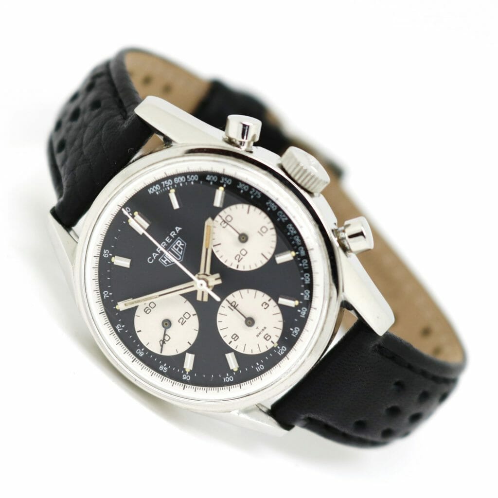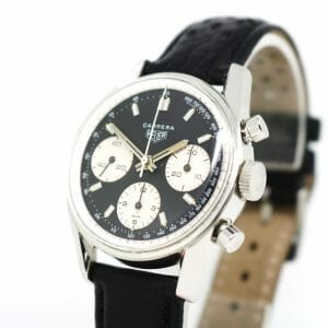 The historical chronograph was born through Jack Heuer’s thirst for simplicity. Following the Second World War, the landscape for chronographs was dominated by those deployed in military circles. Manufactured with spiral scales and artillery telemeters, Jack claimed these cluttered dials became difficult to read. Experimentation with new inventions helped Jack pursue a clean and clear design for his own chronograph. By incorporating divisions in the outer crystal ring, he was able to maximise space on the dial and improve legibility. Rendering an outer bezel redundant, the Carrera adorned an innovative display which found value in dial clarity. The abundance of space on the dial allowed ample room for tachymeter or decimal scales if required.