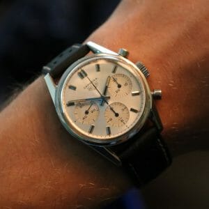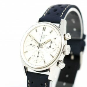 The historical chronograph was born through Jack Heuer’s thirst for simplicity. Following the Second World War, the landscape for chronographs was dominated by those deployed in military circles. Manufactured with spiral scales and artillery telemeters, Jack claimed these cluttered dials became difficult to read. Experimentation with new inventions helped Jack pursue a clean and clear design for his own chronograph. By incorporating divisions in the outer crystal ring, he was able to maximise space on the dial and improve legibility. Rendering an outer bezel redundant, the Carrera adorned an innovative display which found value in dial clarity. The abundance of space on the dial allowed ample room for tachymeter or decimal scales if required.