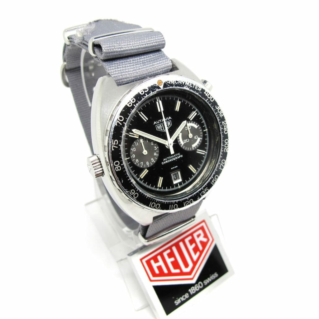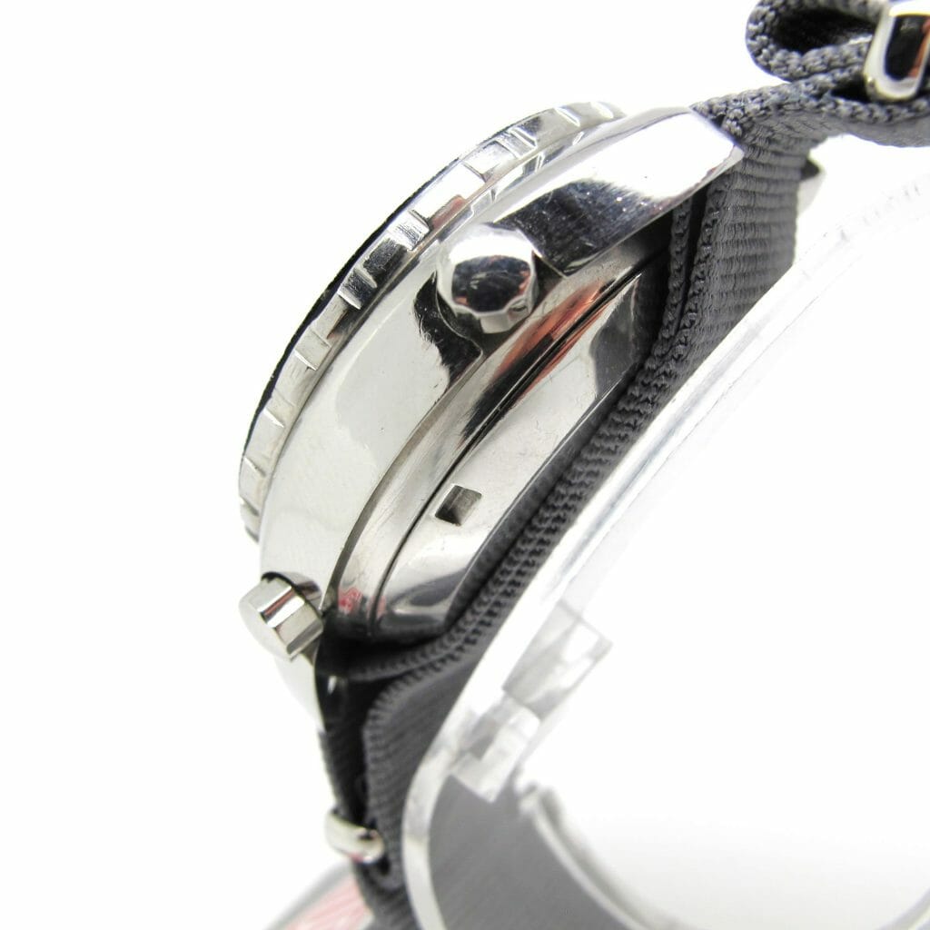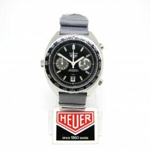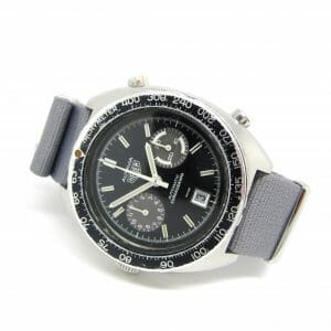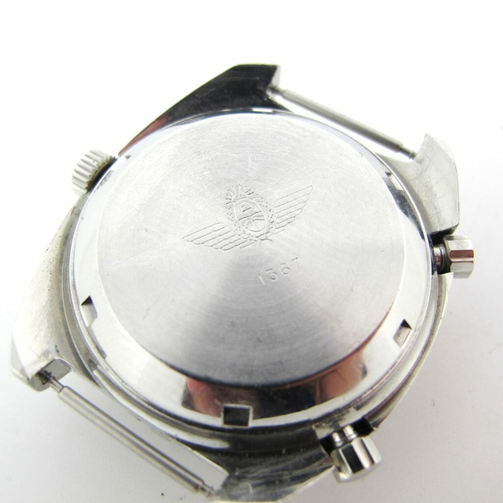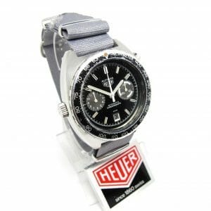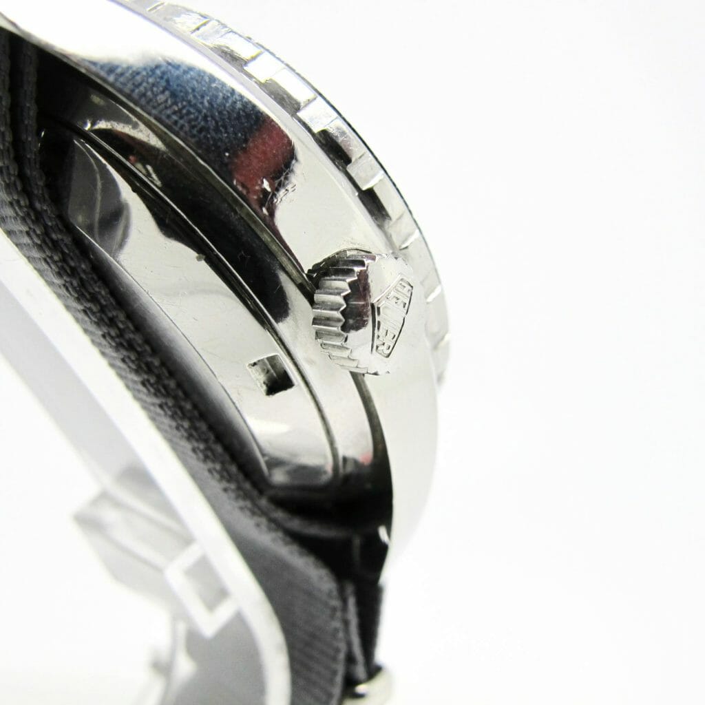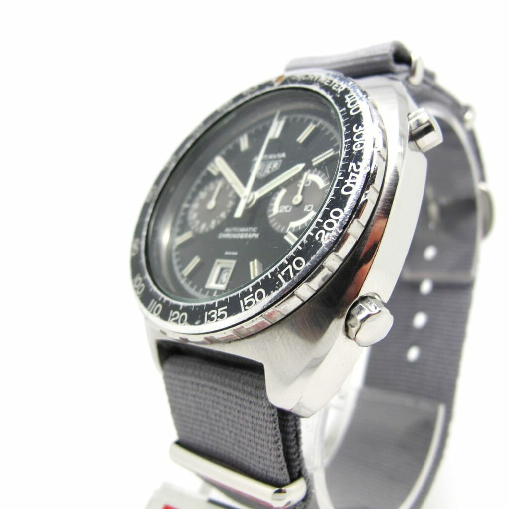 Very rare 11630 Autavia from the early eighties, the case back has good clear crest for the Argentinian air force. Typical easy to read clear black dial all original. The watch has clearly been worn and shows signs of wear particularly on the bezel, just what collectors of military watches want to see, this has not just come out of stores, it has been used for purpose. Very collectible vintage Heuer.