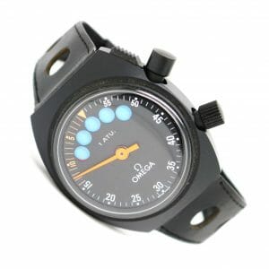 One of two examples available, this superb Omega Yacht Racing Wrist Timer remains in ‘New Old Stock’ condition and is ready to be worn. When started, the discs change colour for easy to read 5 minute segments- an essential feature when timing the start of a yacht race. This manual wind Omega timer is a unique and interesting piece in fully working order.