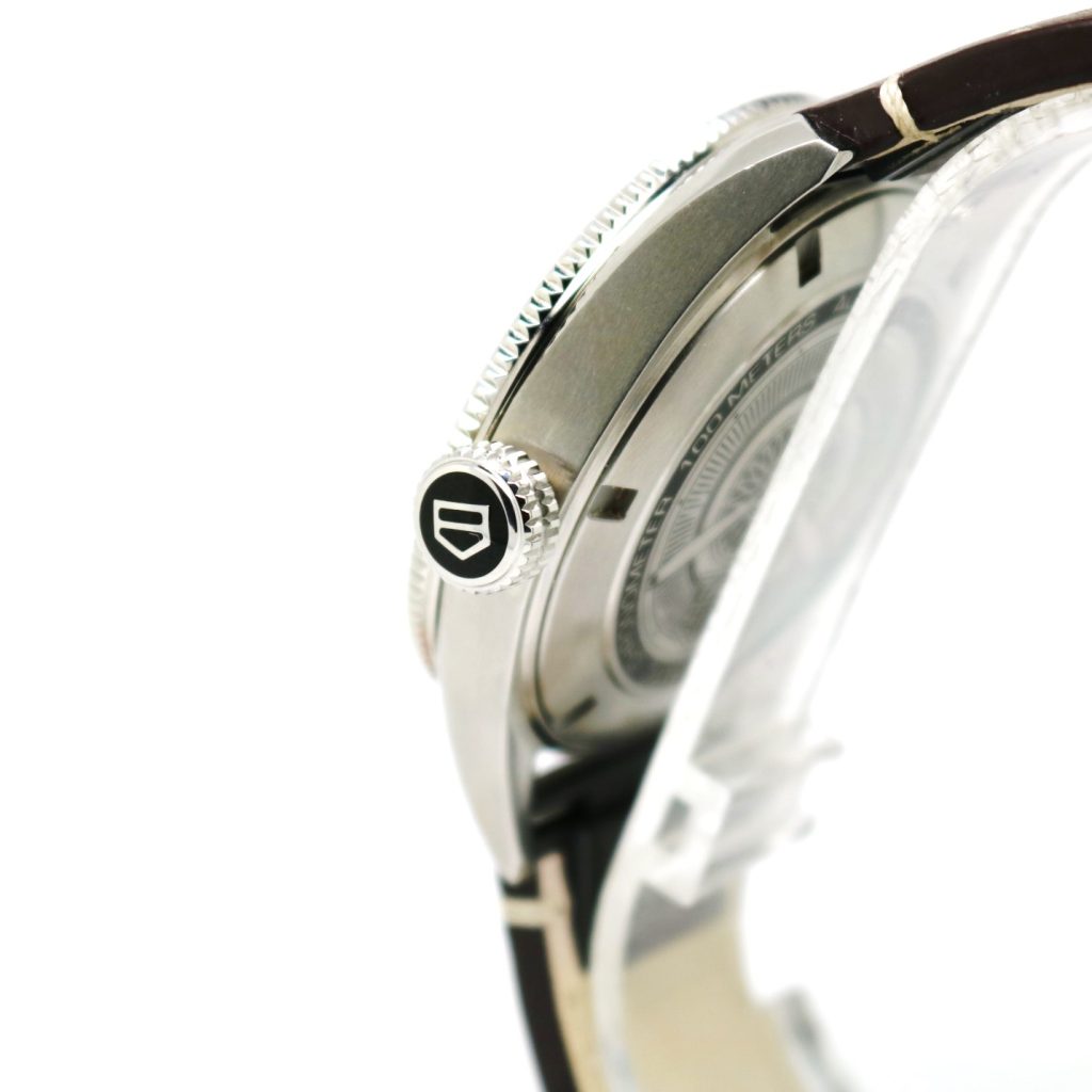 Heritage appears as the driving theme being the new breed of inspiring Autavias. This WBE5114.FC8266 reference features a 42mm stainless steel case, an oversized crown, sword-shaped hands and a 60-minute bidirectional ceramic bezel. Its smoked brown dial offers a vintage flair echoing its predecessors of the 1960s. Powered by a Calibre 5 automatic movement, this chronometer is the full package for a collector seeking a versatile, affordable everyday watch.