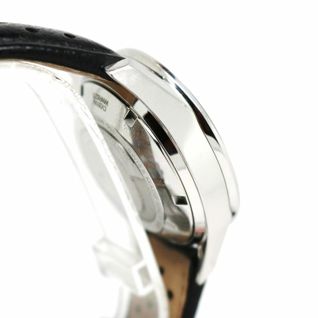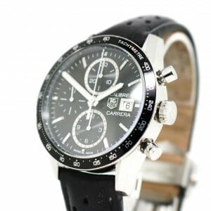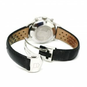 Continuing the rich legacy of the Heuer Carrera, this outstanding CV201AJ reference incorporates the finesse of its predecessors into a reveloutionised modern design. This reference measures significantly larger on the wrist at 41mm, as opposed to the original 36mm diameter of classic Carreras. Asserting a real presence on the wrist, this breathtaking Carrera features a glossy black dial with striking silver ringed sub-dials standing before it. Furthermore this watch features the unique and widely revered ‘Fangio back’; depicting famous racing driver Juan Miguel Fangio engraved in the steel casebac. Powered by a Calibre 16 movement, this Carrera is presented on its original deployment strap with folding buckle.