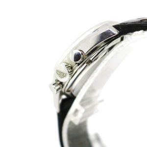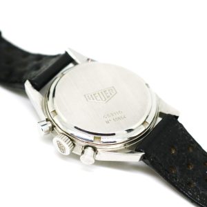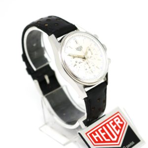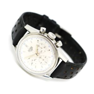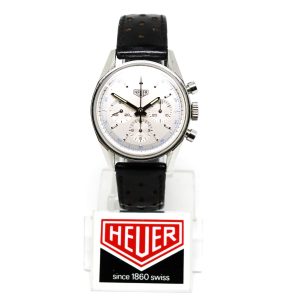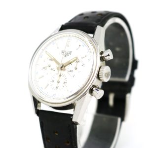 This superbly executed re-issue Carrera CS3110 stands as a fitting tribute to the glorious Carrera models of the 1960s. Re-issues such as this particular model continue to be universally admired by Heuer collectors as TAG were meticulous in their efforts to capture the finesse of the original models. Particularly this CS3110 model incorporates all the components of the original Heuer Carrera 2447D from its 36mm stainless steel case, to the design of the dial and sub-dials as well as the positioning of the pushers and crown. Consistent with all Carrera re-editions, this watch is powered by a manual-wind Lemania 1873 movement. This particular example remains in very good condition and is accompanied by its original ‘Heuer Classics’ packaging, complete with its signed guarantee and booklets. This Carrera CS3110 remains in perfect working order and is fitted to a black leather racing strap. As the prices of original sixties Carreras continue to accelerate, these early re-issues are becoming very sought after and fantastic value for money.