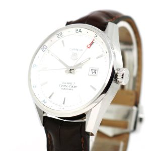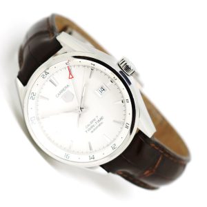 Clean. Simple. Classic. The TAG Heuer Carrera ‘Twin Time’ incorporates the streamlined efficiency and beautiful simplicity of the original 2447 Carreras of the 1960s. Featuring the unique GMT hand, the Twin Time Carrera is an unusual spin on the typical chronograph display of its ancestors. In an era where TAG Heuer provide modern perspectives of classic designs, the Twin Time Carrera is the perfect blend of old and new. While stripped back stylistically, its 41mm case offers a substantial presence on the wrist.