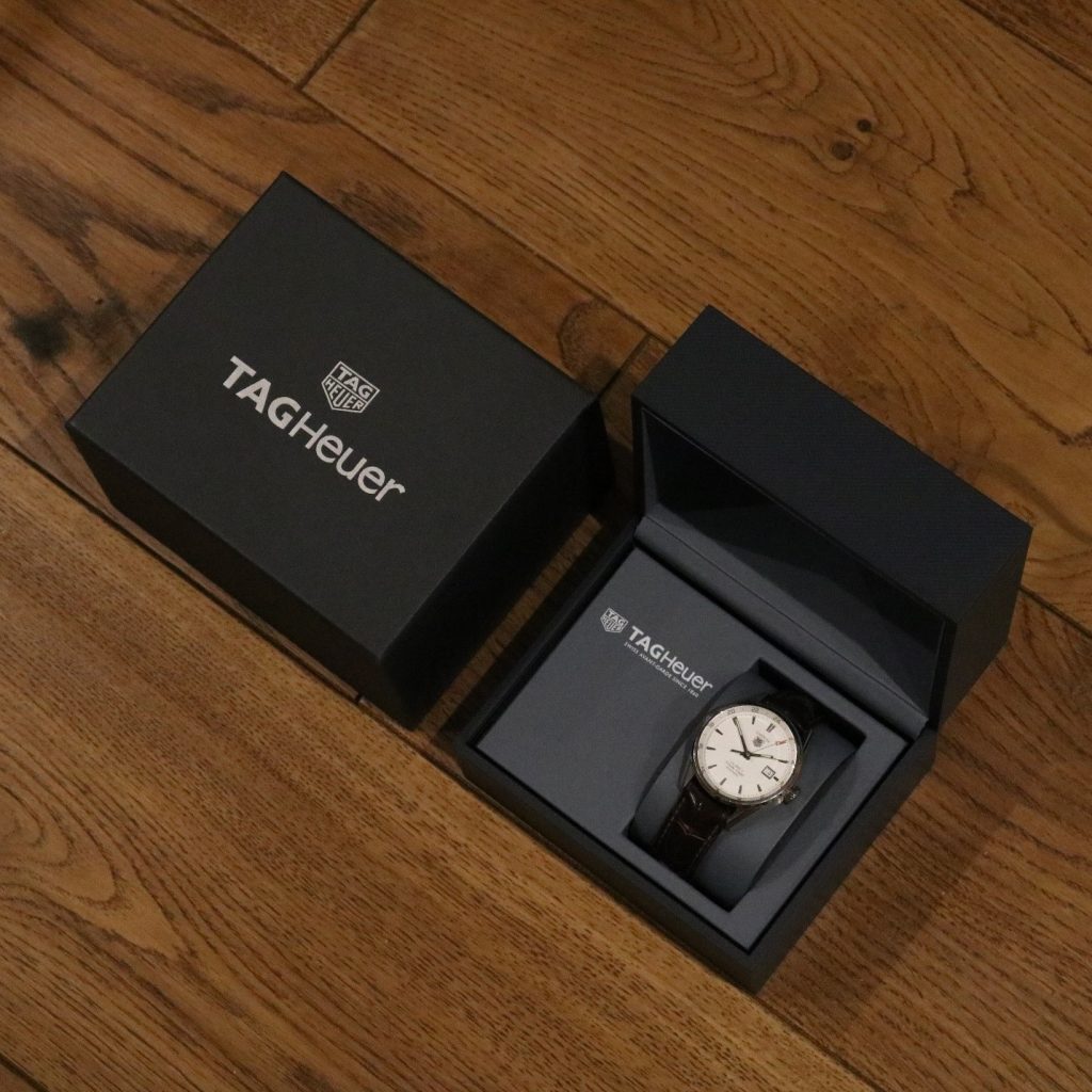 This watch is powered by a Calibre 7 automatic movement, visible through its transparent caseback. A truly exceptional modern Carrera, paying tribute to the clean and revolutionary designs of the 1960s. This example is accompanied by generic TAG Heuer packaging and booklets.