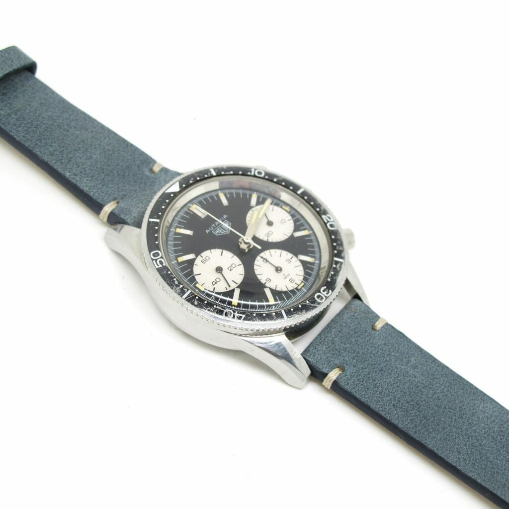 A very stylish “vintage” strap in a very cool colour, these can be made to order and the stitching is done by hand.