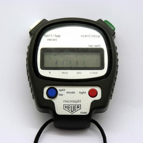 view moreFully functioning Heuer microsplit lap timer from the mid 1970’s, Took timing to a new level.
